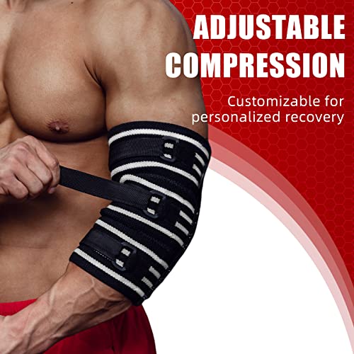 【3-SECTION SEGMENTED COMPRESSION】– Unlike traditional elbow sleeves for weightlifting, our 10-stage segmented compression elbow sleeves feature three adjustable compression bands, allowing you to easily adjust the perfect and most appropriate size and compression for the best protection based on the various sizes of your upper arms, elbows, and forearms as well as your training needs. Additionally, the adjustable elbow pads improve blood circulation to increase training results.