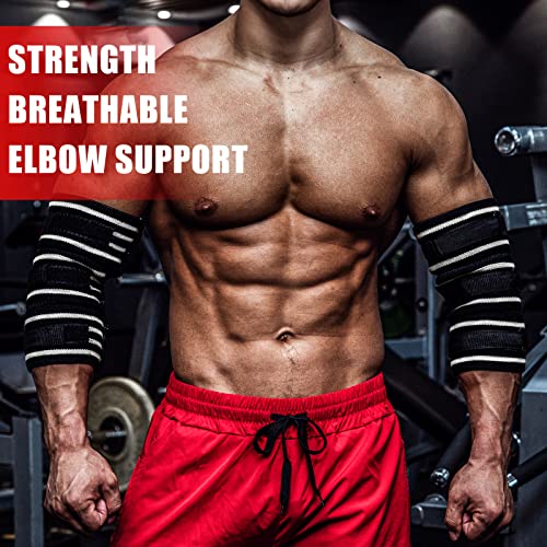 【DURABLE & COMFORTABLE MATERIAL 】– The adjustable elbow sleeves weihghtlifting are made of a high-quality polyester fabric and covered with stretch latex fibers, allowing them to withstand severe pulling and rubbing without being damaged or breaking. The unique way the fabric is woven also ensures optimal breathability and comfort, so that our compression elbow pads do not rub or irritate the skin, allowing you to practice without distraction.